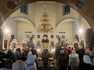 В Свято-Троицком Марковом мужском монастыре, в храме Казанской иконы Божией Матери, в день праздника Рождества Христова, в полночь, священнослужители и братии монастыря, совершил Божественную литургию святителя Иоанна Златоуста.